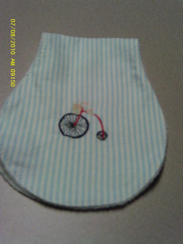 I use cloth diapers prefolded and here is a pic of them. Get lots of compliments on them. Here are some others I made also, never have put any extra batting in them! Aways open for new ideas though! Ok, I can't find the rest of my pics! Maybe add later!