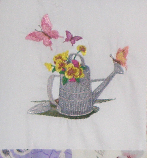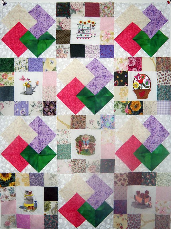 Nice job of incorporating the embroidery designs in the quilt. I am sure she loves it!