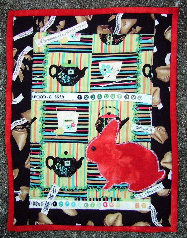 Dotty, that is a really cute quilt you sent chele! I love the fortune cookies fabric. I've never seen any like that before! And the teapots are darling.