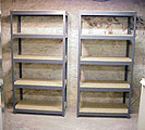 great storage space underneath. (sorry the picture is so small. This is a photo of 2 of the products, before splitting them in half. You only need ONE shelf tower for TWO workstations). They have them at Menards, HOme Depot, Sears etc. I got mine at Menards.