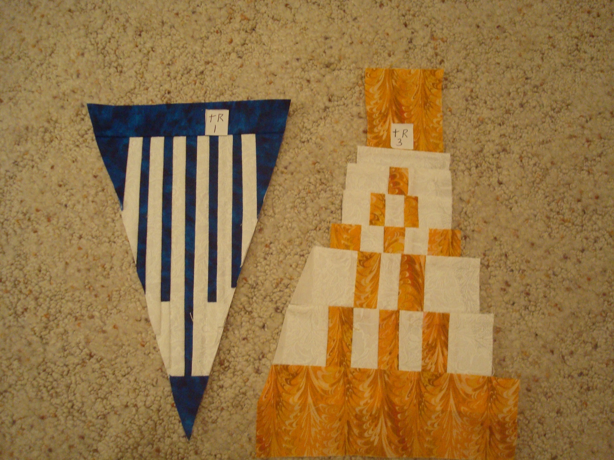 Well, here are my week 6 triangles. Nothing fancy, but they are done, even though the one isn't trimmed yet. I have not gotten the hand quilting done on my triangles yet. Just too much else going on in my life right now, but so far, am still on track. Thank goodness for next week, to catch up. Sure have been loving all the blocks that are being posted.