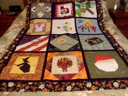 I have my two Calendar BOM's together, just need the quilting, but that will take me a little while, so thought I'd post the quilt tops here. Now remember, I made one for both of my granddaughters, which means I did one of the blocks from this BOM and then did one of my own. So I think, there is some of both here and mine in each quilt. I loved te way they turned out.