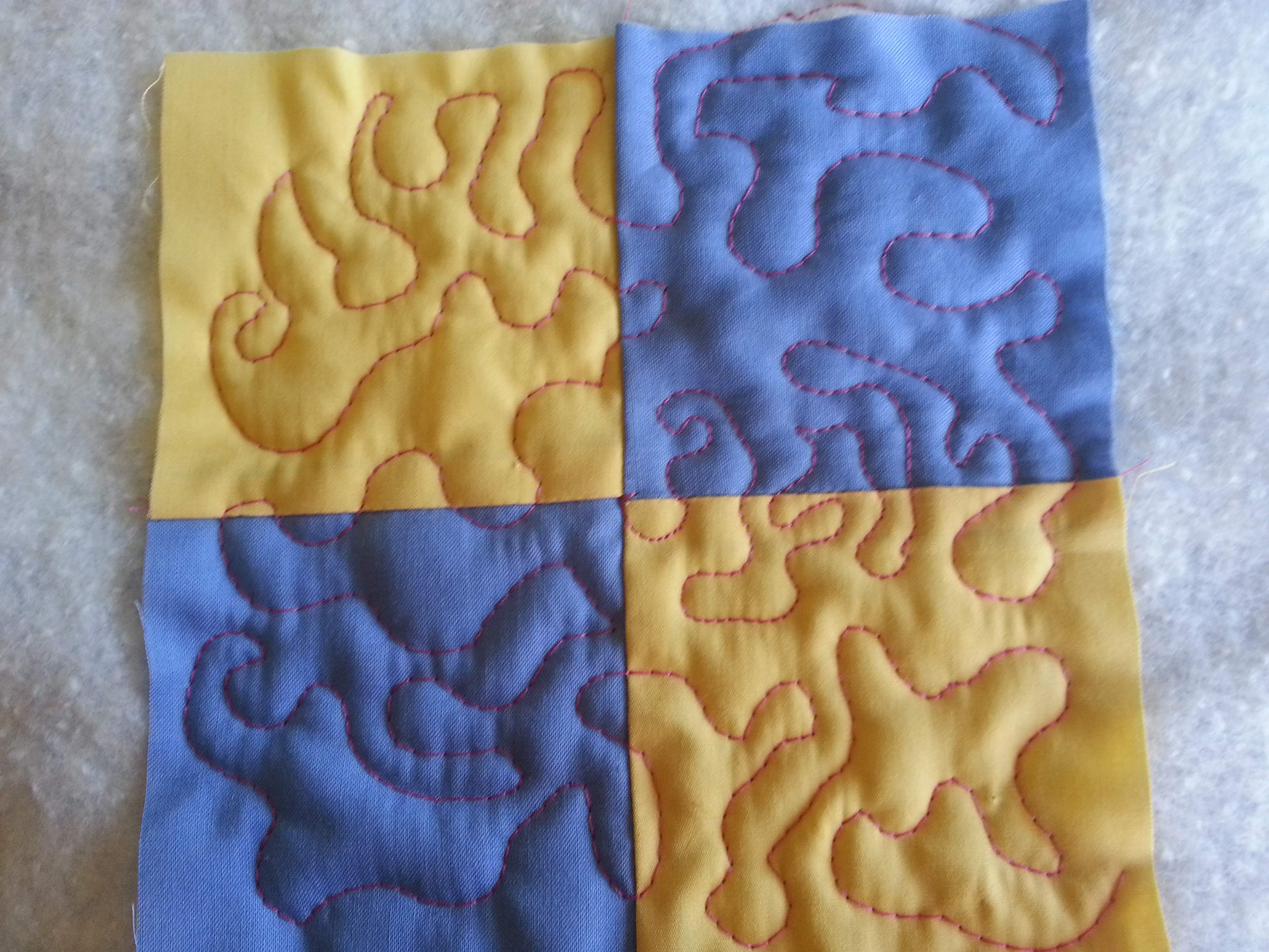 Here is an update. I made a sample block this time, rather than just working on a plain piece of fabric. Any better?