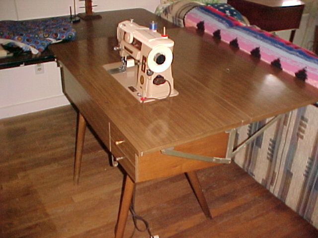 CD I really like that table. I've never seen one in person, but have noticed a few come up for sale on CL. I think I may have to add to my want list. I'm also on the hunt for a table (not made by Singer) that has the cut out and it fits 15 and clones in their bottom cases. It would be nice to have one table with insert that fits all my case machines.