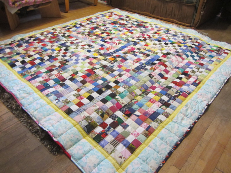 Make scrappy bindings on your scrappy quilts. They look cute. Here are a couple of mine you can see: