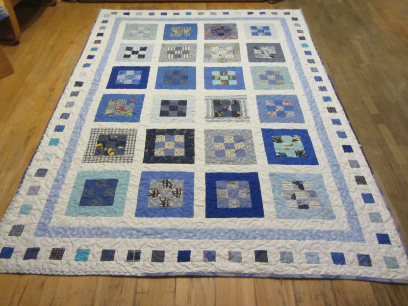 and here is one where I chose only blue bindings, but still scrappy: