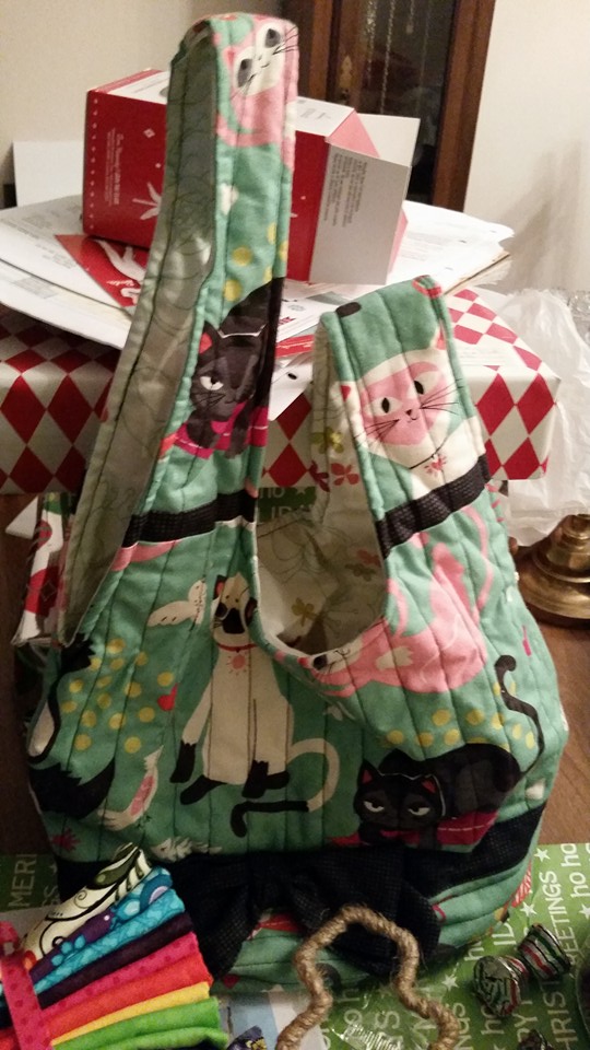 I had so been hoping that that kitty purse that SheriR had posted was coming to me. And it DID! Happy Dance of epic proportions going on here. There was so much wonderful stuff in that package. The candy filled jar is actually a candle lantern, all that candy was loose in the box and I just filled it up as I unpacked. Fabric in my favorite colors, a stand for my phone that doubles as a pincushion, sewing notions, the bag and a mug rug out of the same fabric, and a bunch of other lovely stuff. Thank you so, so much Sheri! [ATTACH=CONFIG]537270[/ATTACH][ATTACH=CONFIG]537271[/ATTACH][ATTACH=CONFIG]537272[/ATTACH]