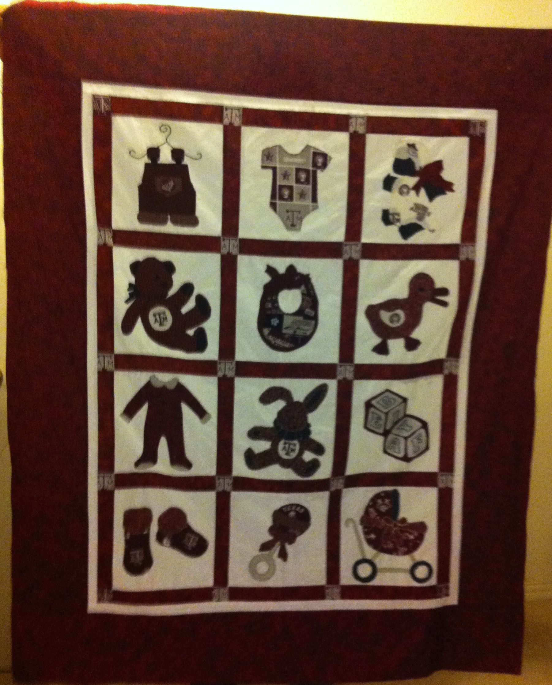 What a cute quilt. I made a maroon and white quilt for a MS State fan friend of mine. I used maroon thread. Either would do fine with your quilt. White will lighten the maroon and maroon will darken the white. Both will pull it together.