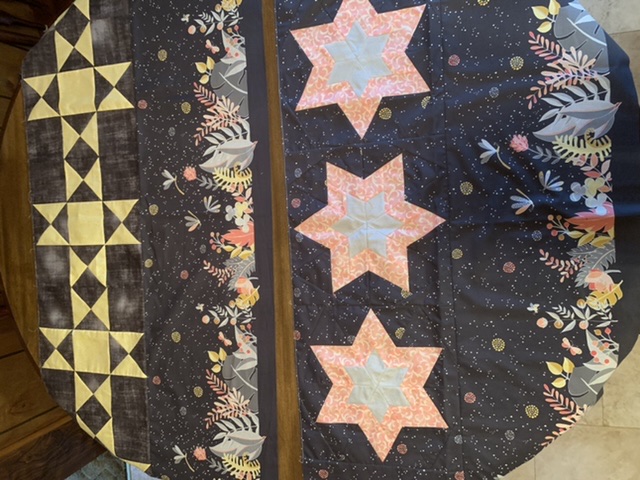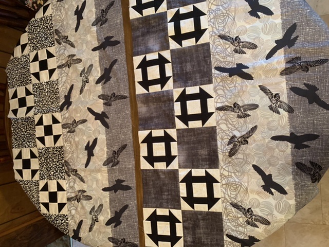 Here are the first 2 sets of bed runners. They will go to a nursing home to make the rooms look more inviting for the residents. This is a great way to use up fabrics. There are 11 rooms on the one hallway that we will trying to cover. My sister will do the quilting on them since it was her idea 😊