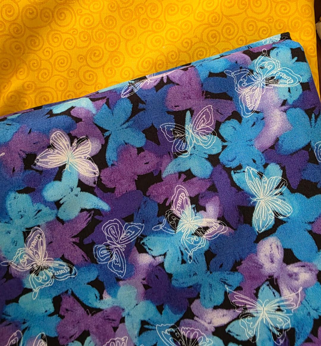 Here's the back story on the butterfly fabric:This quilt is incredibly special to me. It’s being made for my dear friend Judy, who loves butterflies, yellow, and purple. 🦋💛💜