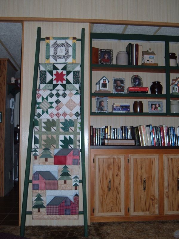 I work on a farm & have talked to my boss about getting an old picking ladder to use in my sewing room for quilt display. Now if I can just get my DH to come in his truck & pick it up without too much fussing over me bringing more "stuff" into the house LOL