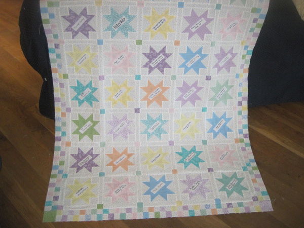 I am so excited! I just completed the top for my first grandchilds quilt- I will start machine quilting it tomorrow. I would love some input on what everyone thinks about the binding....the checkerboard borders are 2" wide finished size. Even with a narrow binding, I am a bit worried that the binding will really spoil the checkerboard effect of the border. I wish I had thought of this sooner....any suggestions? :?: