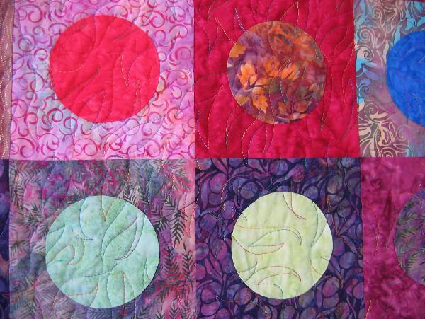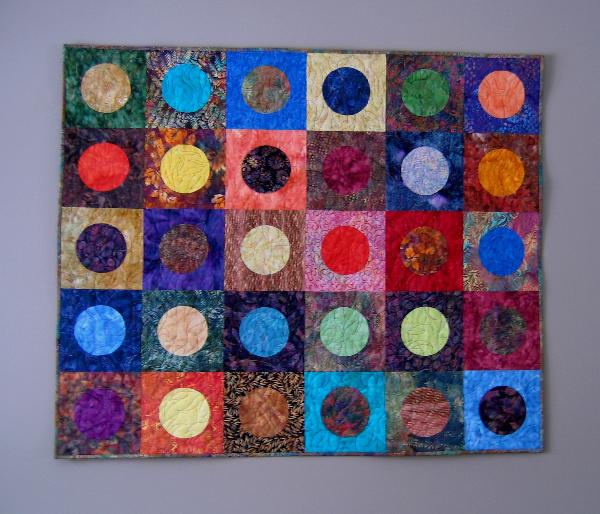 I just finished this wallhanging for my dining room. I used Sharon Schamber's piecelique technique to piece the circles.