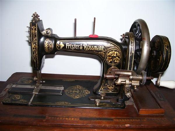 This is "Lily" - my 1910 (aaprox. because records no longer exist of these machine serial numbers) - Frister & Rossmann Hand Crank sewing machine. She was produced in Berlin and bears the badge. I do not use her for sewing as these old machines come with a very long needle which is no longer produced, and I own five only of them. So Lily just gets to sit and look beautiful. She is in full working order. I am posting this for K3n who has a daughter of the same name. :)