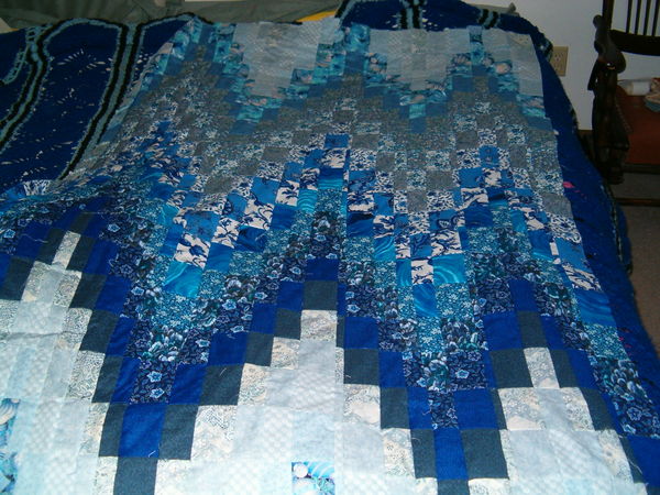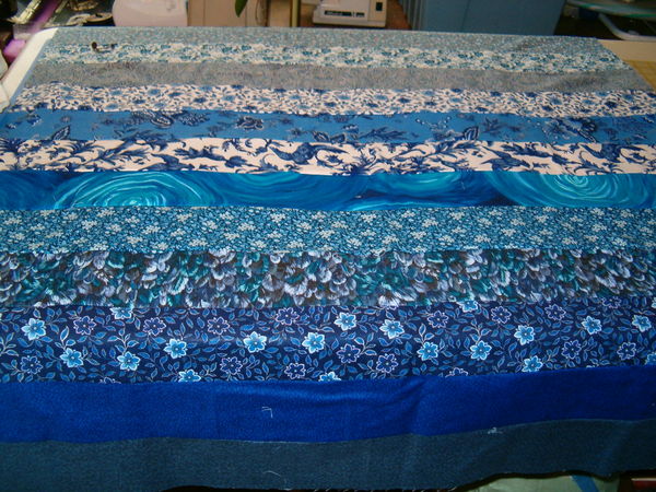 I posted about a Bargello the other day. I got the top done, and am wondering about it now. Do you think the colors blend in too much? Also, I have some fabrics left over,(the strips I posted of) and I think I could make it a bit bigger with them. Do you think it'd be good to do this, or save the strips for another day?