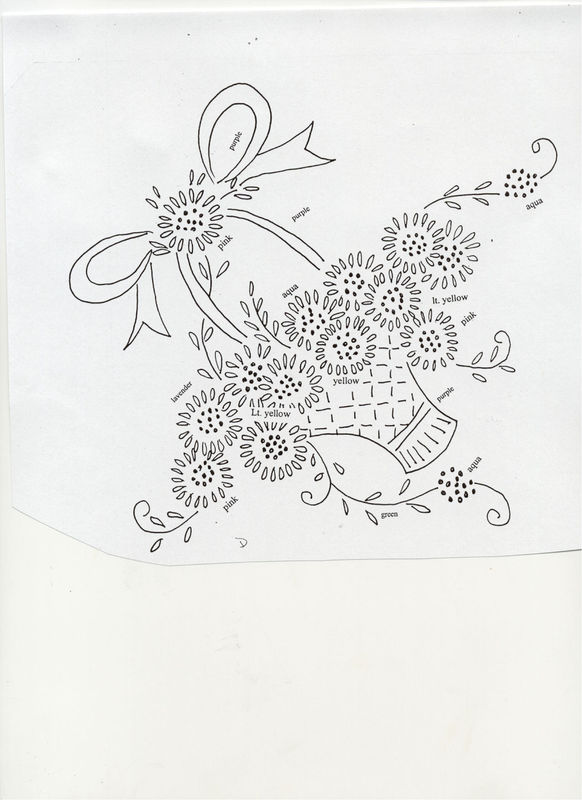 I recognize the first one, too. It was on a worn out scarf in my mother's things after she passed away. I photocopied it to get a pattern. I did some embroidery basket on scarves in the 50's as a teenager, but they were different from yours. My mother in her later years, found one to do for a scarf for one of her dressers. Thank you posting, I am certainly going to print them.