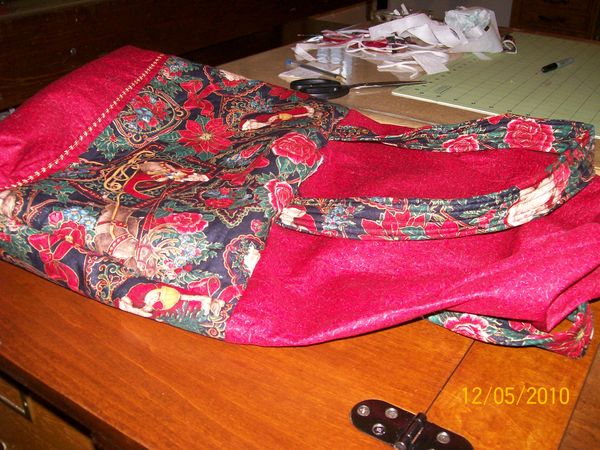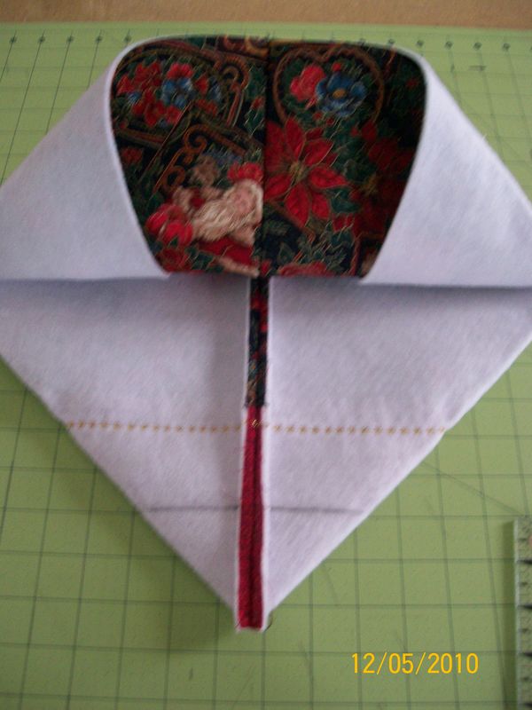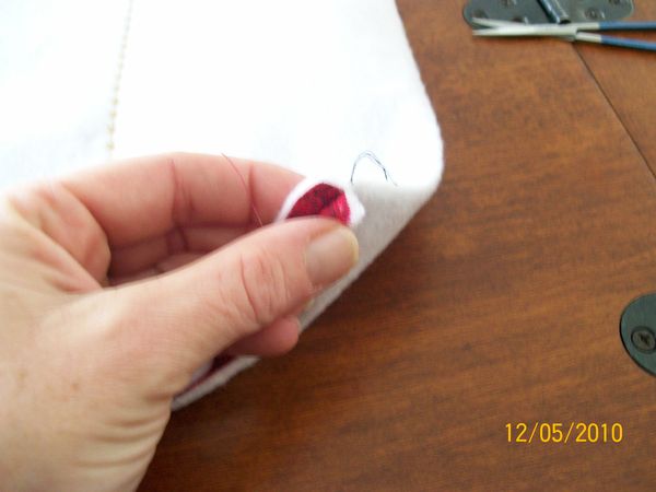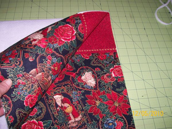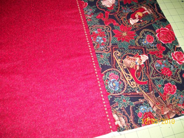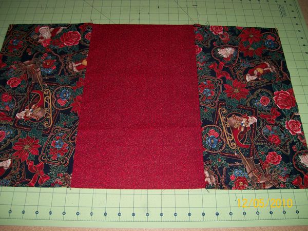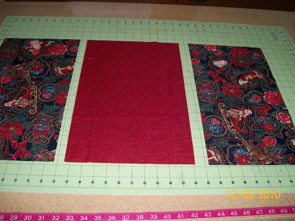 If your using a fabric with a picture such as my santa make sure you get them going the right direction. Sew these 3 together using 1/4 seam