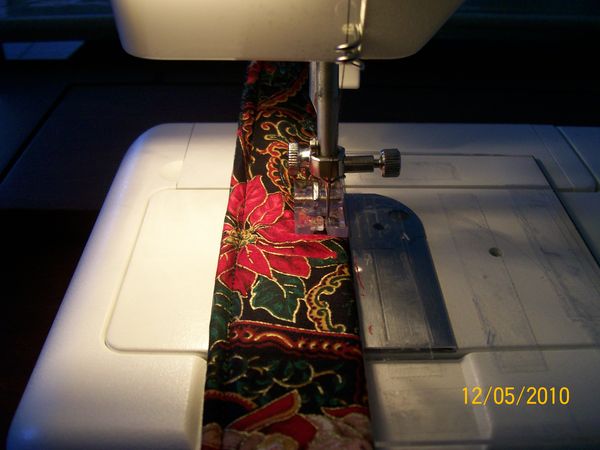 sew along both sides, I use about 3/8 to 5/8 seam here, makes for easier pressing. Before pressing the seam open snip the ends right up to the stitched seam this to will make for easier pressing and cutting.