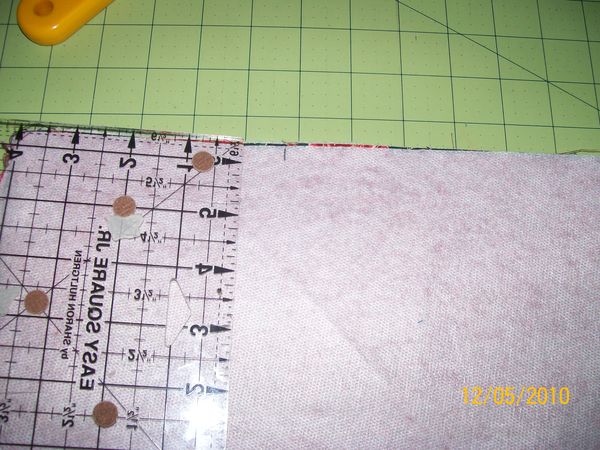 Press those seams to the dark of course, should look something like this, go ahead and fuse this to your pellon 971. I just lay this on top of the pellon and cut