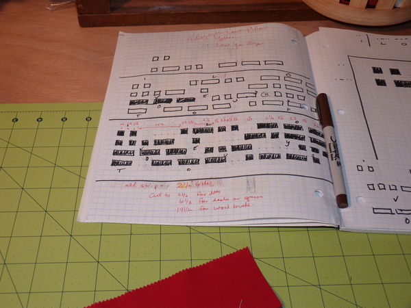 Anyhow. I had an idea I wanted to realize in fabric. I drew out my pattern on graph paper. In so doing, I noted repeated patterns -- grey-red-grey, red-grey, short red, long grey, long red, short grey being the most obvious.