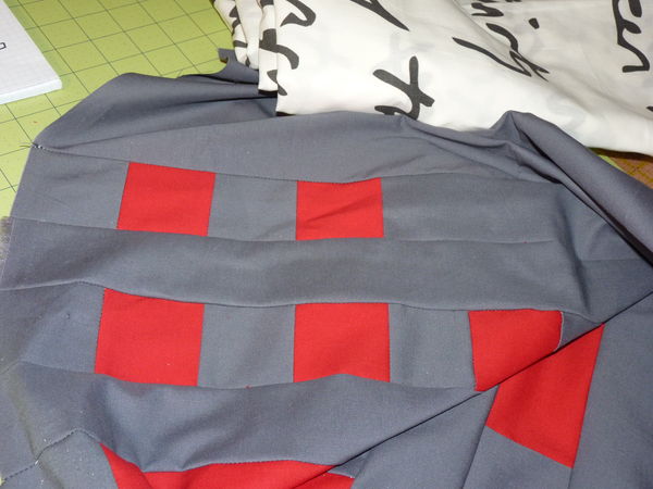 I'm not showing the full project, because a) -- I still need to add a bit, and can't until I get some more fabric b) it's a gift, and I want it to be a surprise c) it will look cool when it's all done, but right now, it take imagination to appreciate the wonder of it.